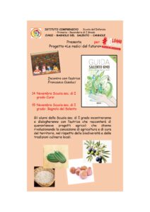 Gli alunni della Scuola sec. di I grado incontreranno e dialogheranno con l’autrice che racconterà di quarantanove progetti agricoli che stanno rivoluzionando la concezione di agricoltura e di cura del territorio, nel rispetto della biodiversità e delle tradizioni culinarie locali.